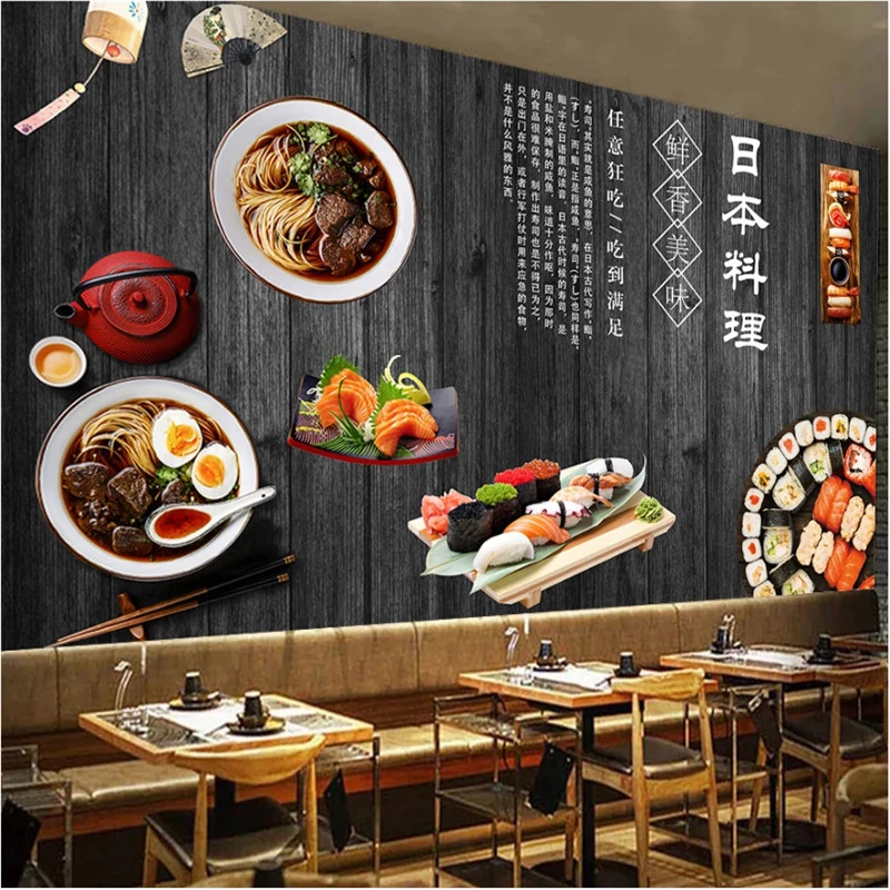 Kustom Masakan Jepang Tema Kertas Dinding 3d Restoran Sushi Catering Industri Dekorasi Hitam Kayu Plank Wallpaper Bertekstur 3d Wallpaper Aliexpress