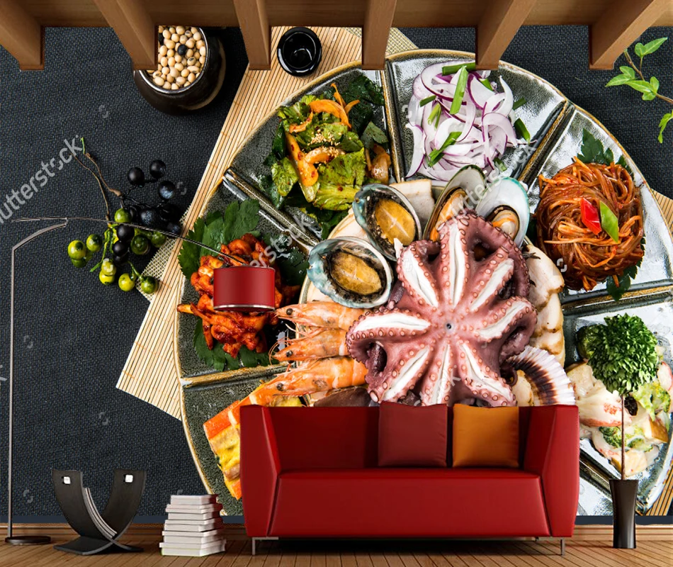 Kustom Restoran Wallpaper Korea Makanan Hidangan Makanan Laut Mural Untuk Ruang Tamu Dapur Restoran Latar Belakang Papel De Parede Pvc Restaurant Wallpaper Papel De Paredepapel De Parede Pvc Aliexpress