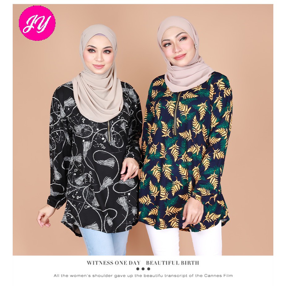Women Casual Fully Printed Front Zip Plus Size Blouse Muslimah Baju Wanita B23792 Shopee Singapore