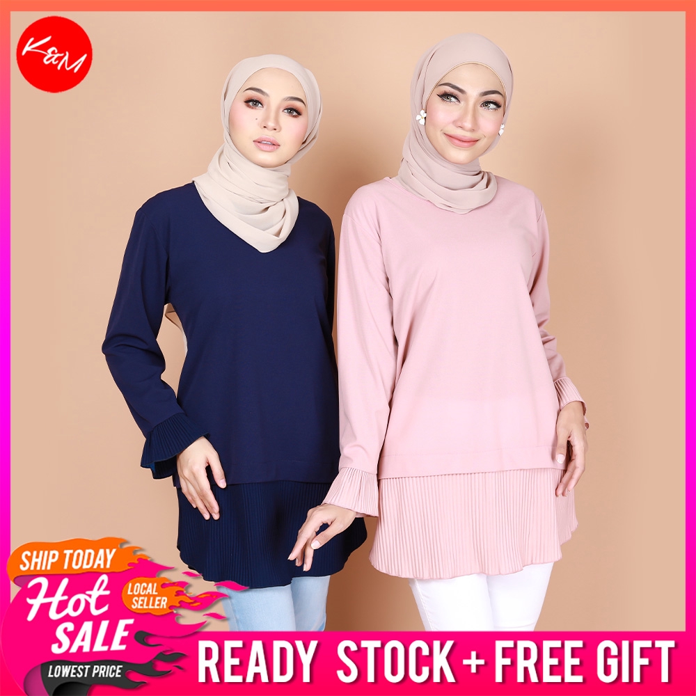 Km Women Zuleika Plus Size Cutting Corner Pleated Tunic Muslimah Long Blouse Baju Wanita Size Besar B11664 Shopee Singapore