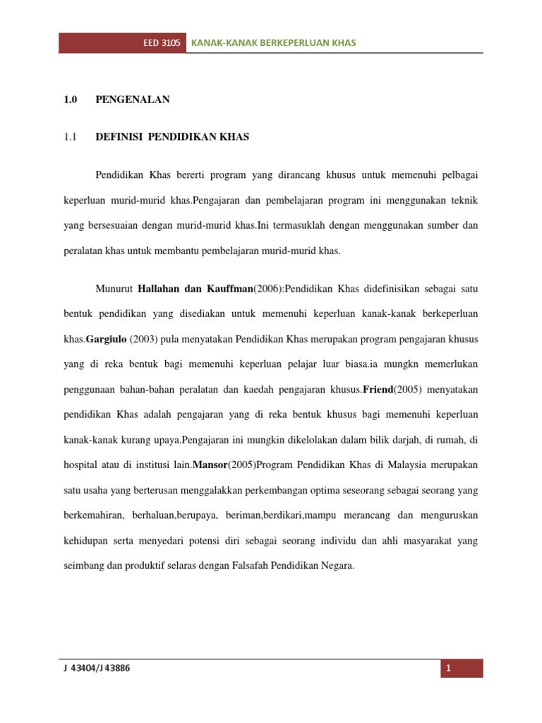 1 0 Pengenalan Kanak Kanak Berkeperluan Khas