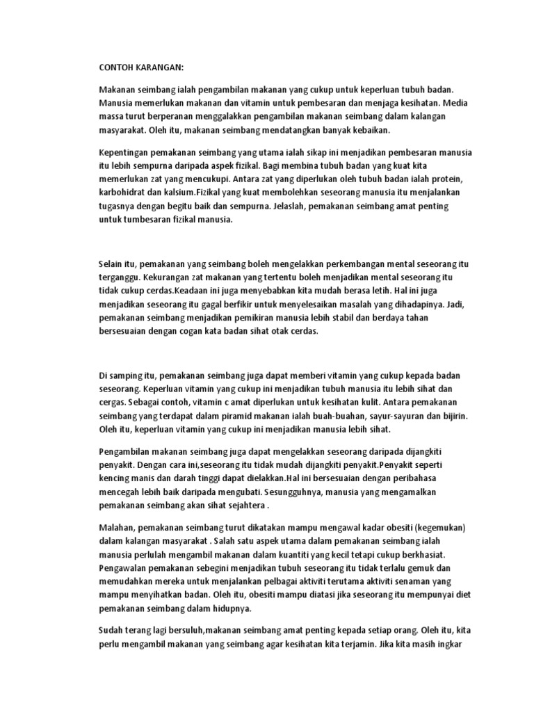 Kepentingan Amalan Pemakanan Seimbang Karangan