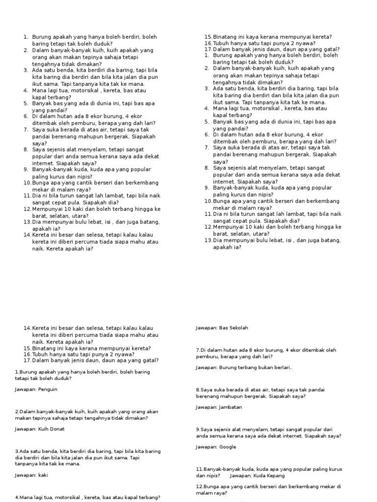 Teka Teki Kereta Apakah Yang Orang Tak Panggil Kereta Soalan Teka Teki