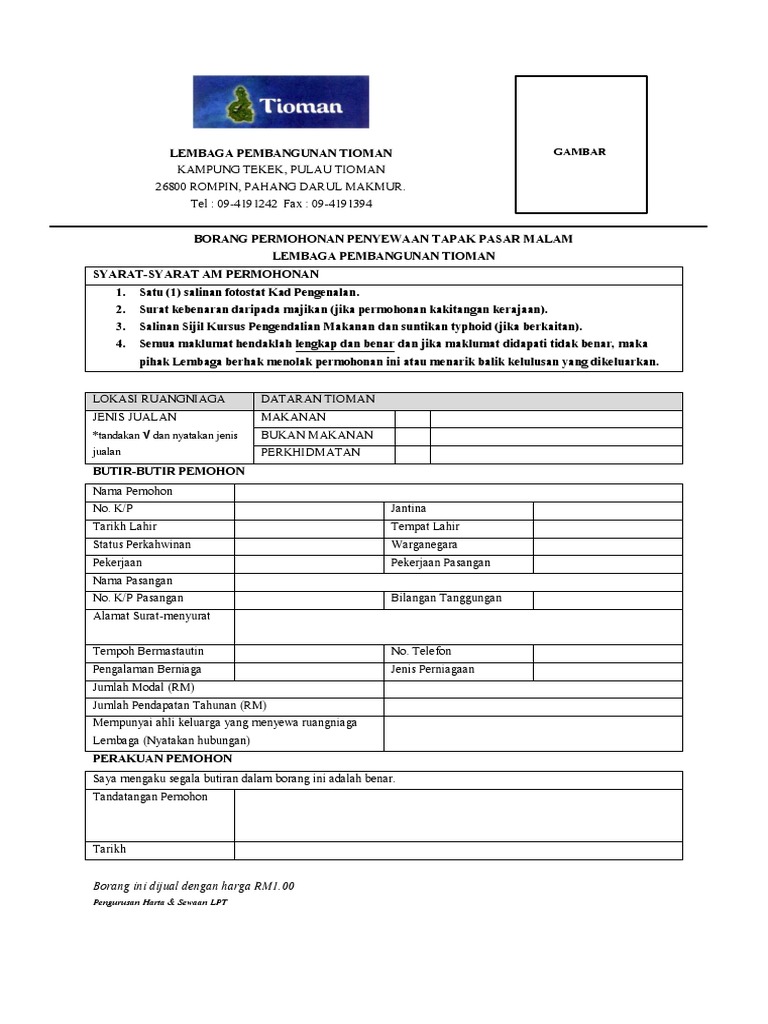 Borang Permohonan Lesen Penjaja Pasar Negeri Sembilan