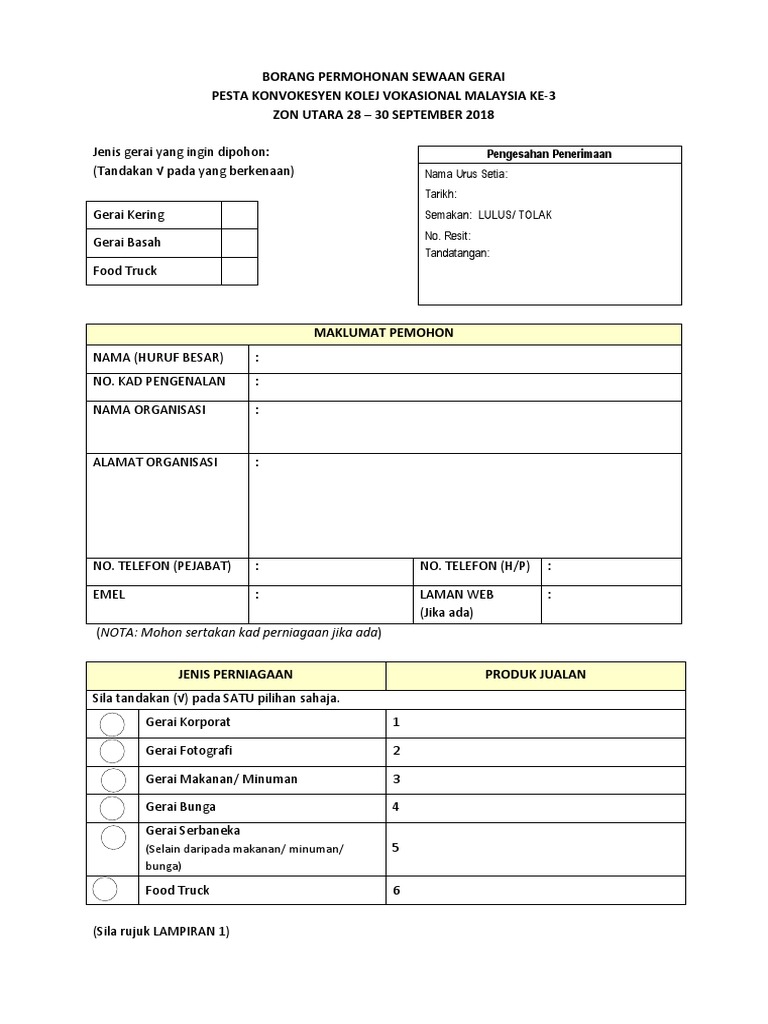 Borang Permohonan Sewaan Gerai Pesta Konvokesyen 2018
