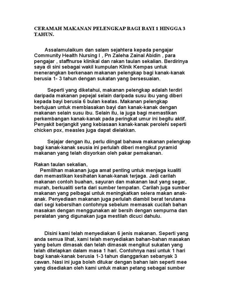 Ceramah Makanan Pelengkap Bagi Bayi 1 Hingga 3 Tahun Doc