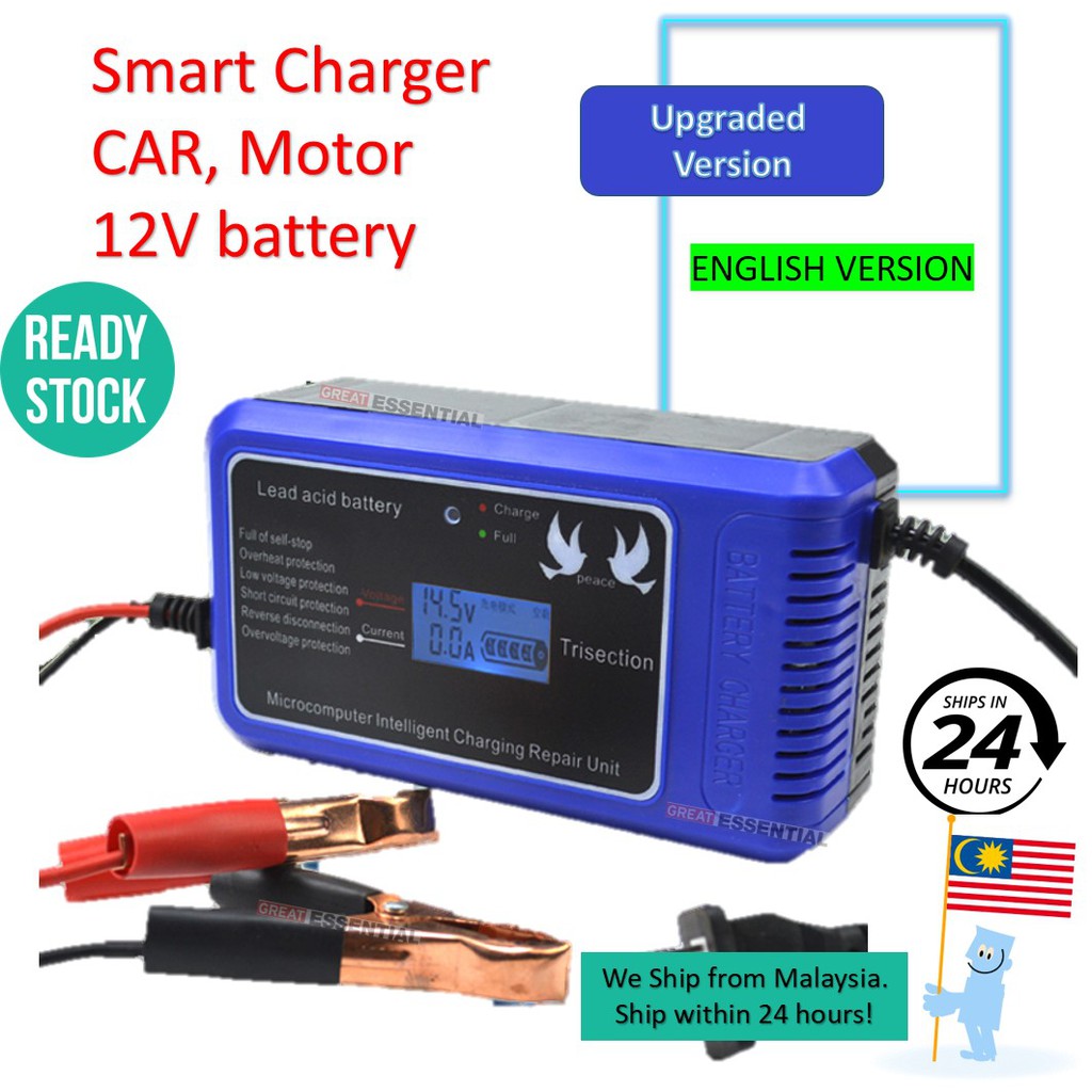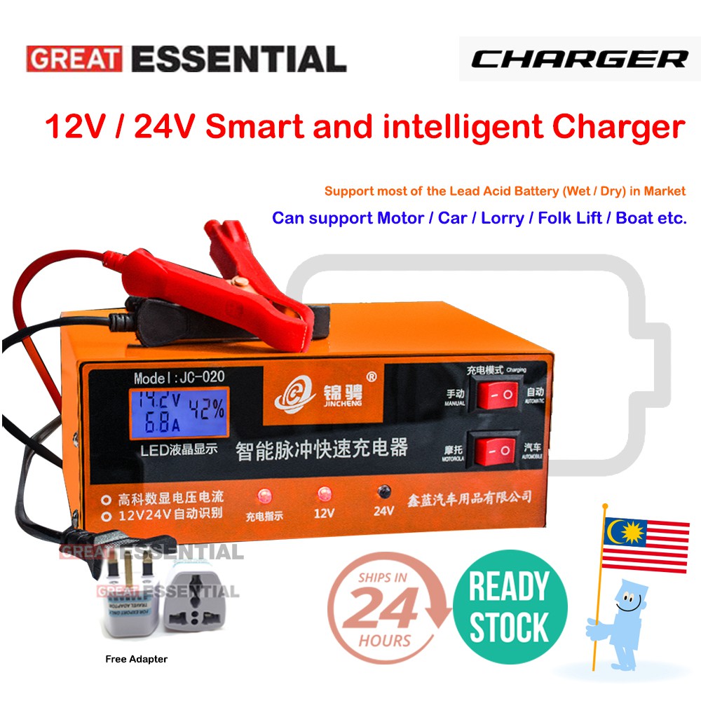 Fully Automatic Smart 12v 24v Car Battery Charger Motorcycle Lorry Repair Charger Pengecas Bateri Kereta Motor Lori