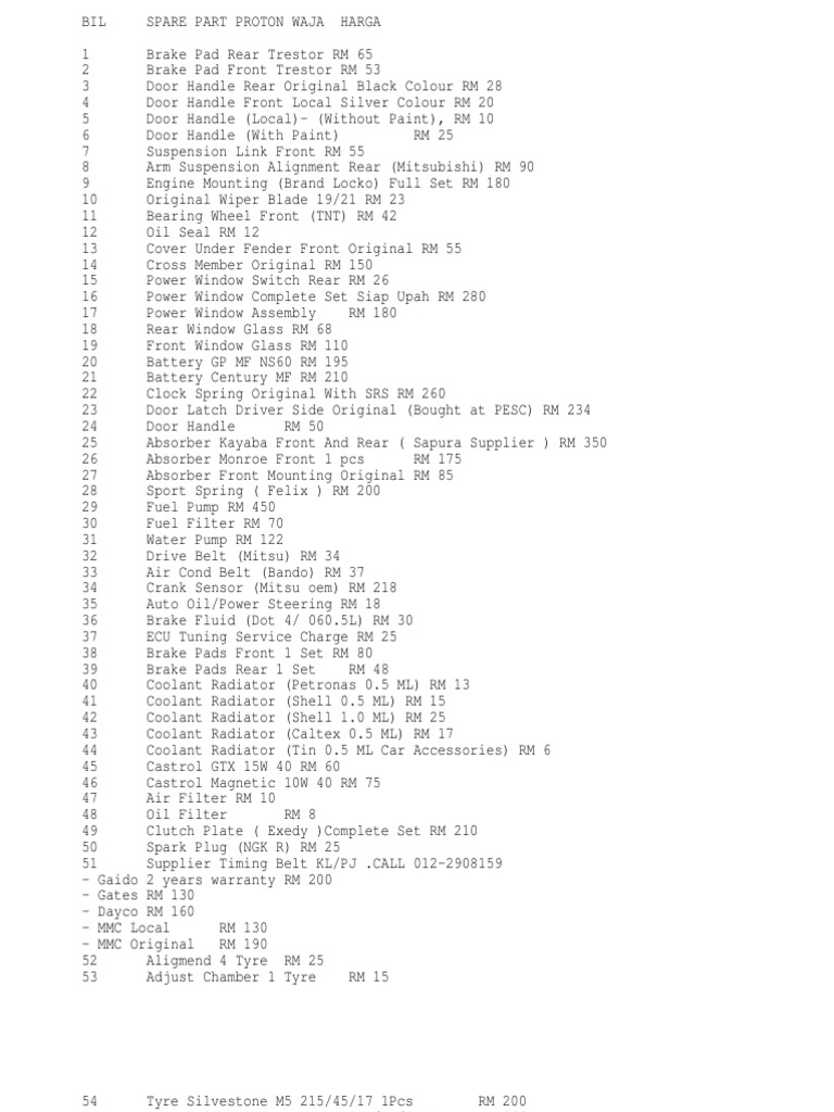 Waja Parts Price Harga In Malaysia Mudah Cari Di Lelong