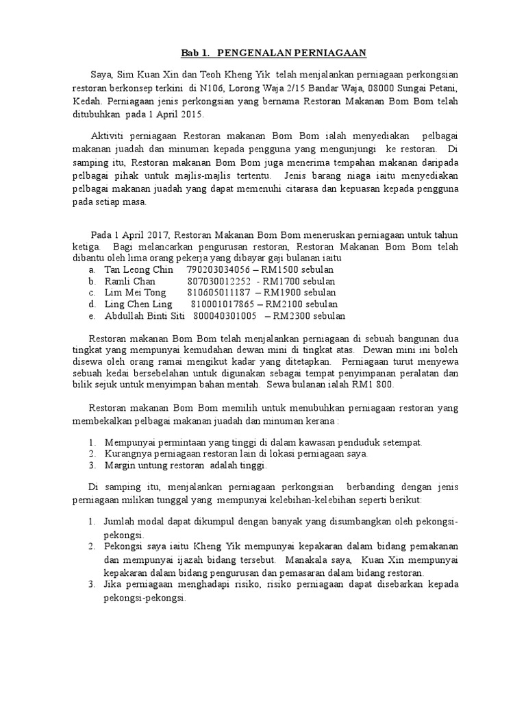 Contoh Pengenalan Perniagaan Perkongsian