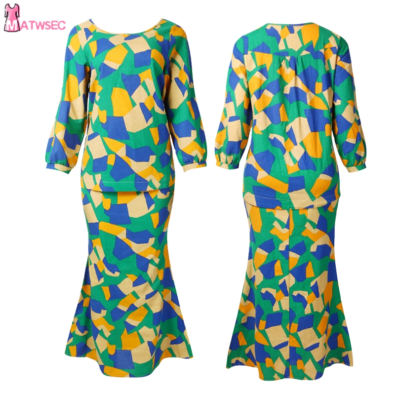 Matwsec Baju Kurung Moden Muslimah Set Plus Size Cotton Linen Geometric Pattern Shopee Singapore
