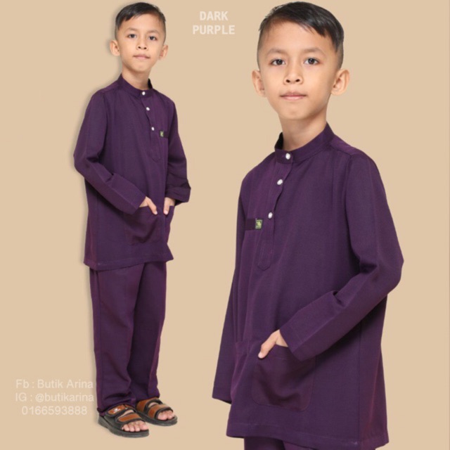 Baju Melayu Budak Anak Kanak Kanak Ungu Gelap Dark Purple Moden Slim Fit Shopee Malaysia
